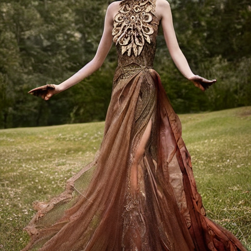 prompthunt exclusive evening dress made of bronze transparent Very well made.
