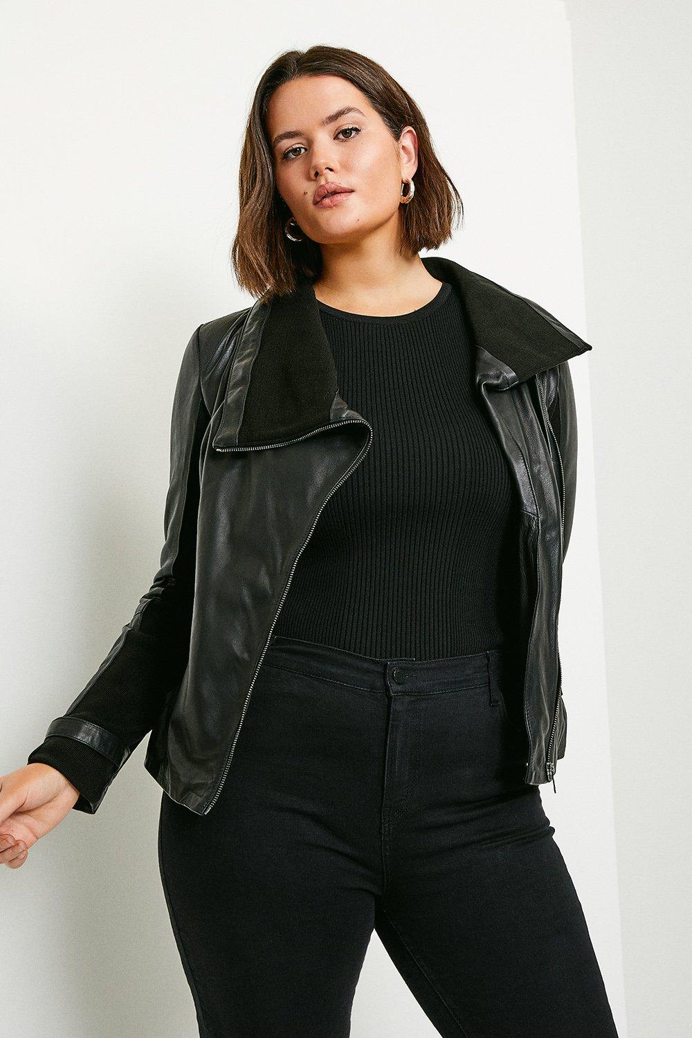 Curve Leather and Knit Envelope Neck Biker Jacket Karen Millen Very well made.