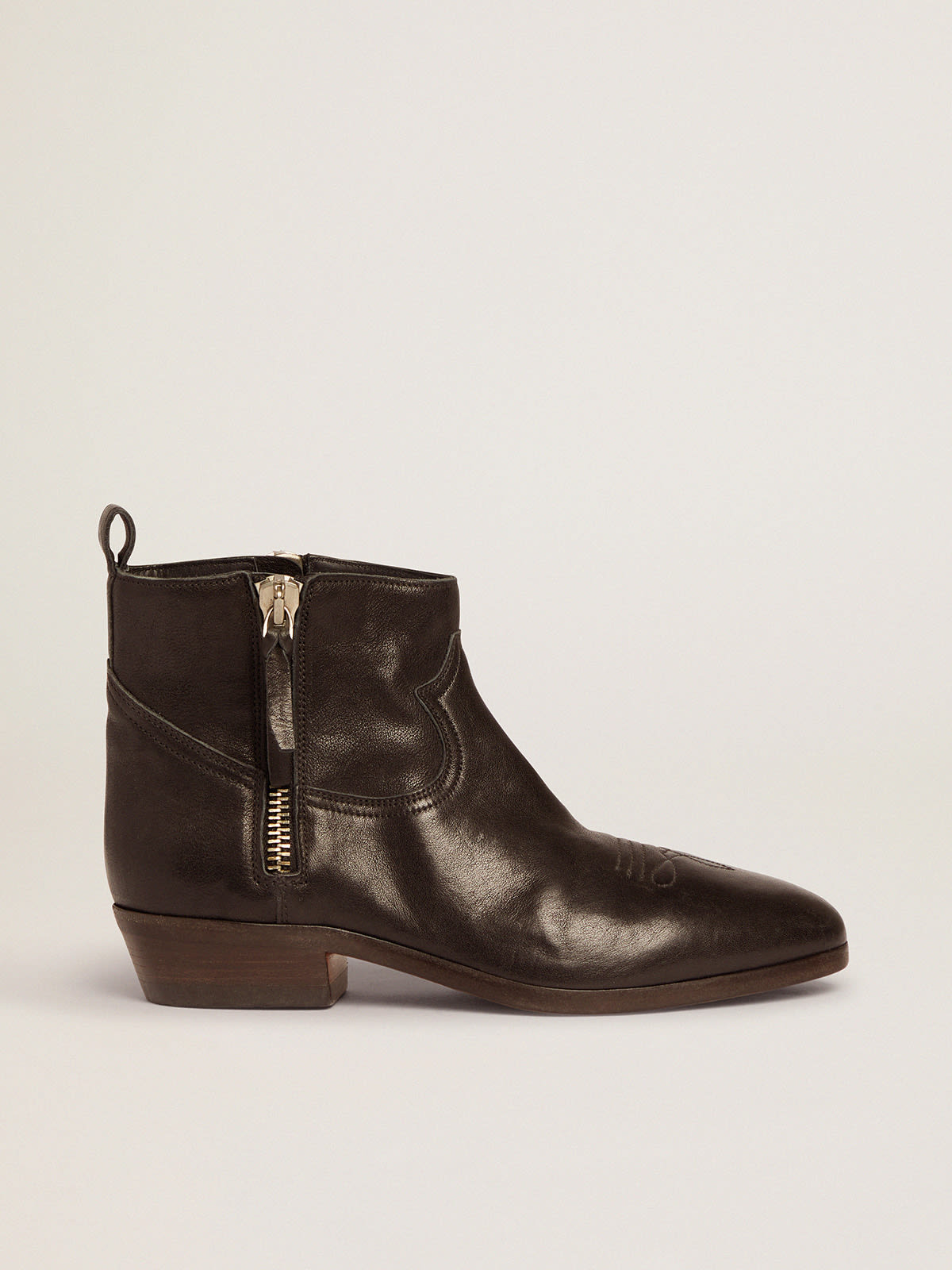 Viand ankle boots in leather with cowboy style decoration Golden Very well made.