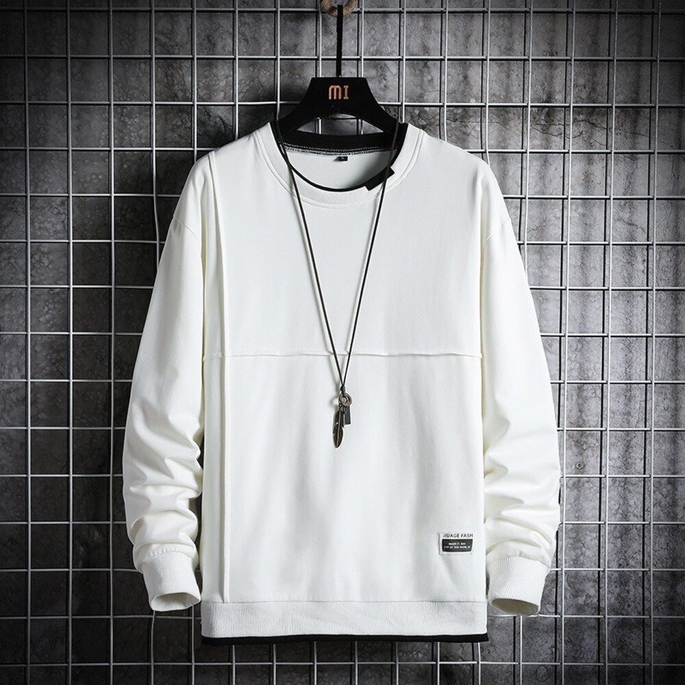 Men Hip Hop Hoodie O neck Sweatshirt Long Sleeve White Crewneck Very well made.