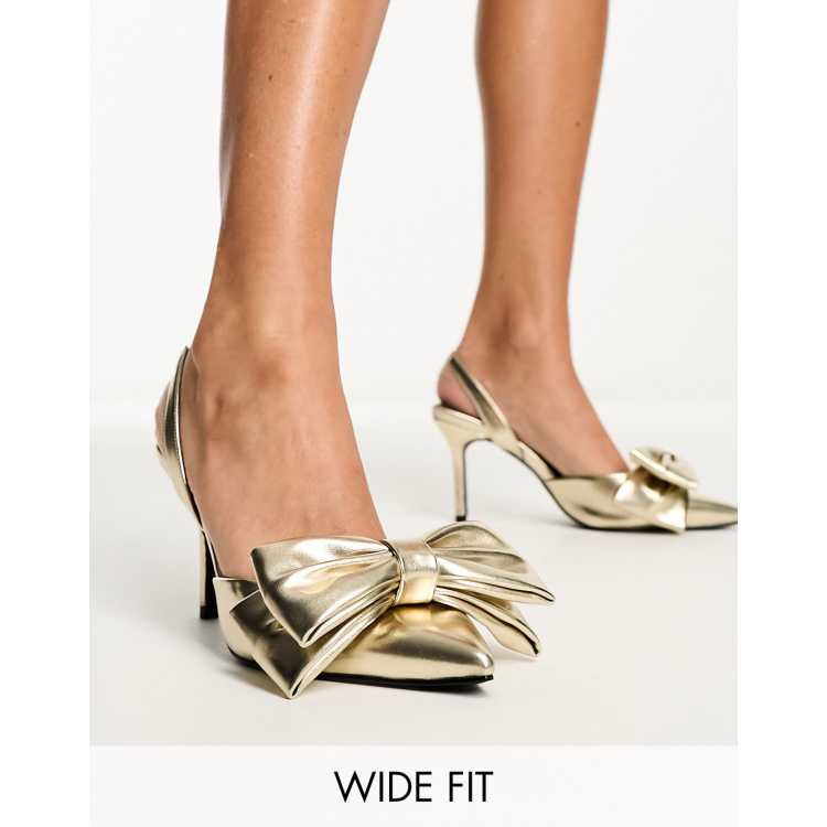 RAID Wide Fit Martini pointed heeled shoe with bow in metallic Very well made.
