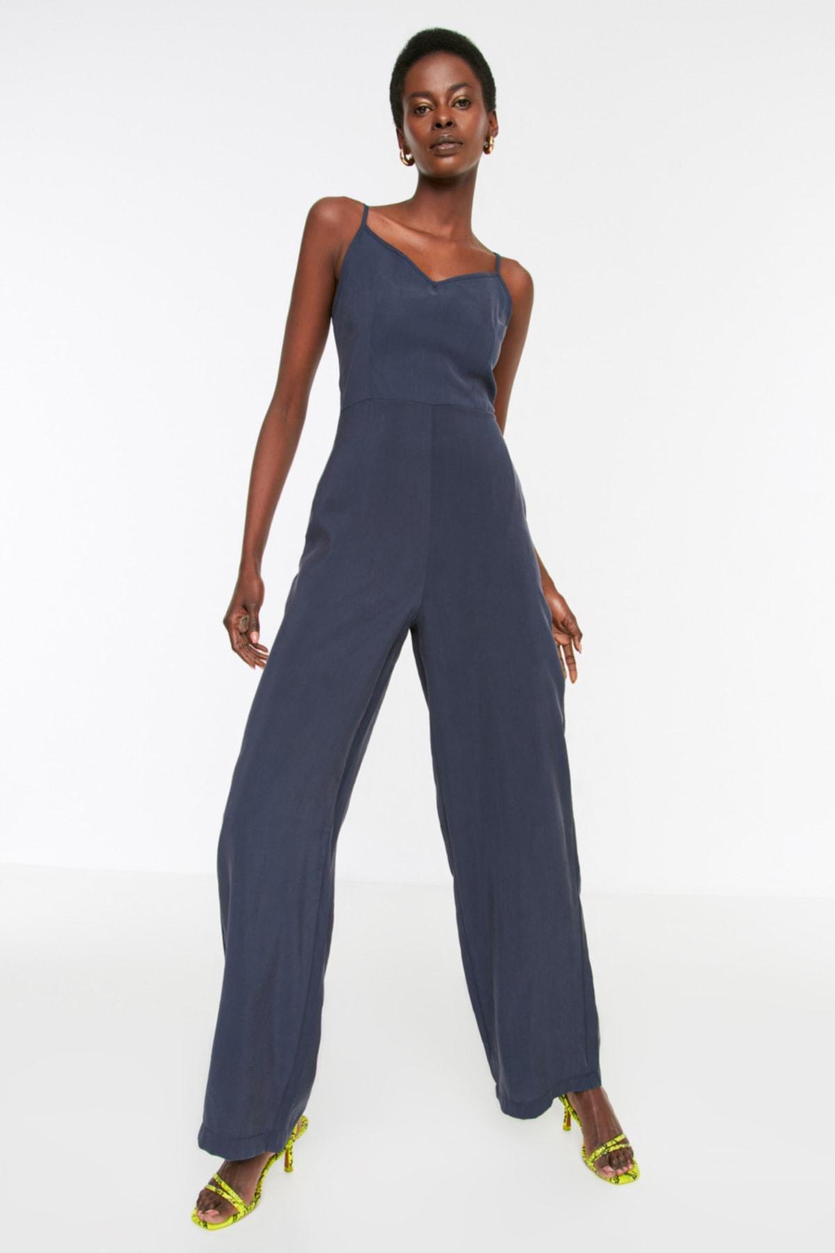 Trendyol Navy Fitted V Neck Jumpsuit Azadea UAE Very well made.