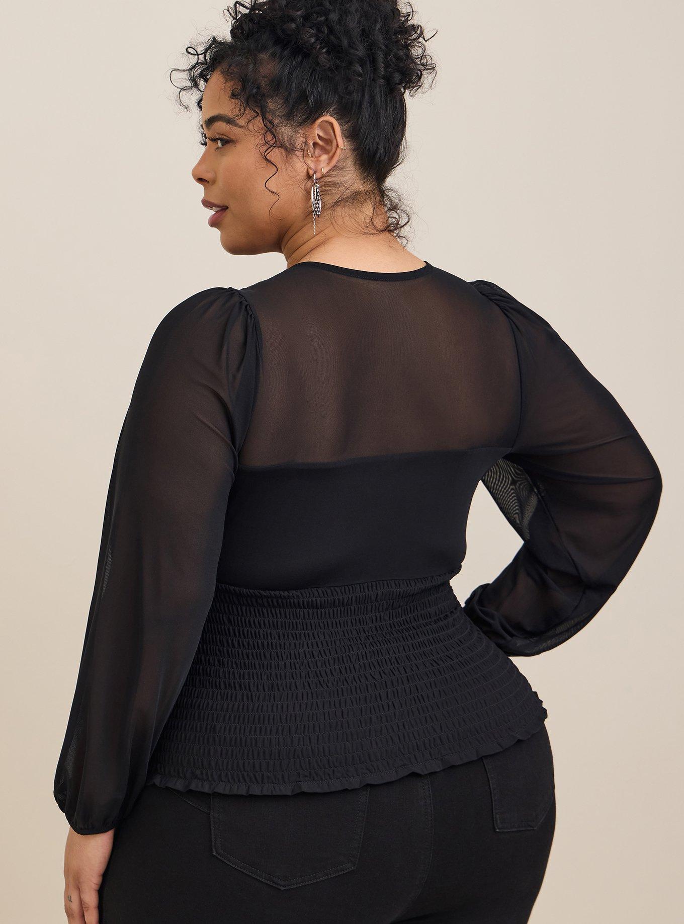 Plus Size Stretch Mesh Sweetheart Smocked Long Sleeve Top Torrid Very well made.