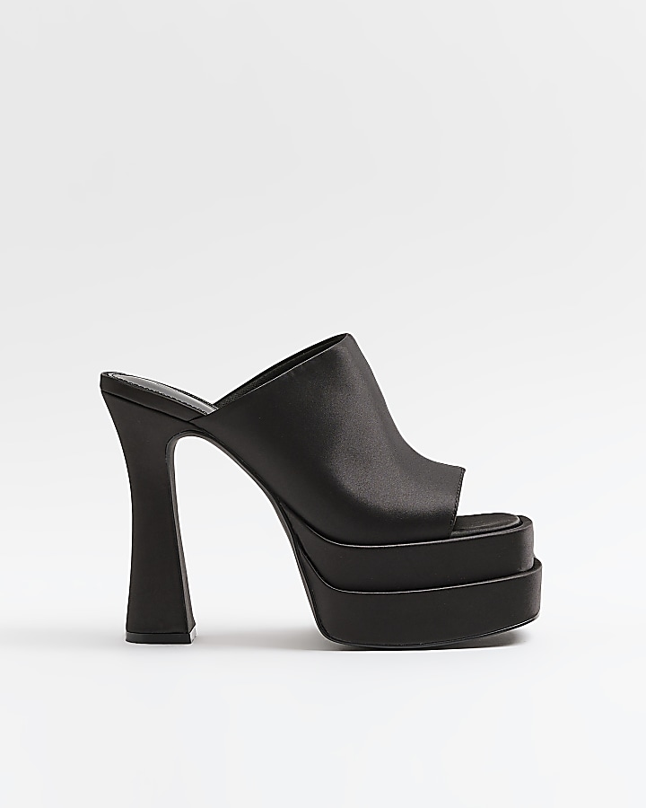 Black satin platform heeled mules River Island Very well made.