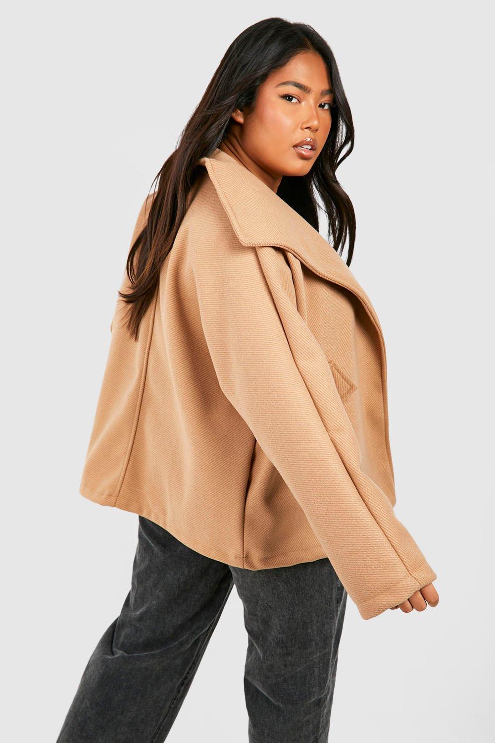 Women s Wide Collar Wrap Coat Short Length Camel Qinti The Very well made.