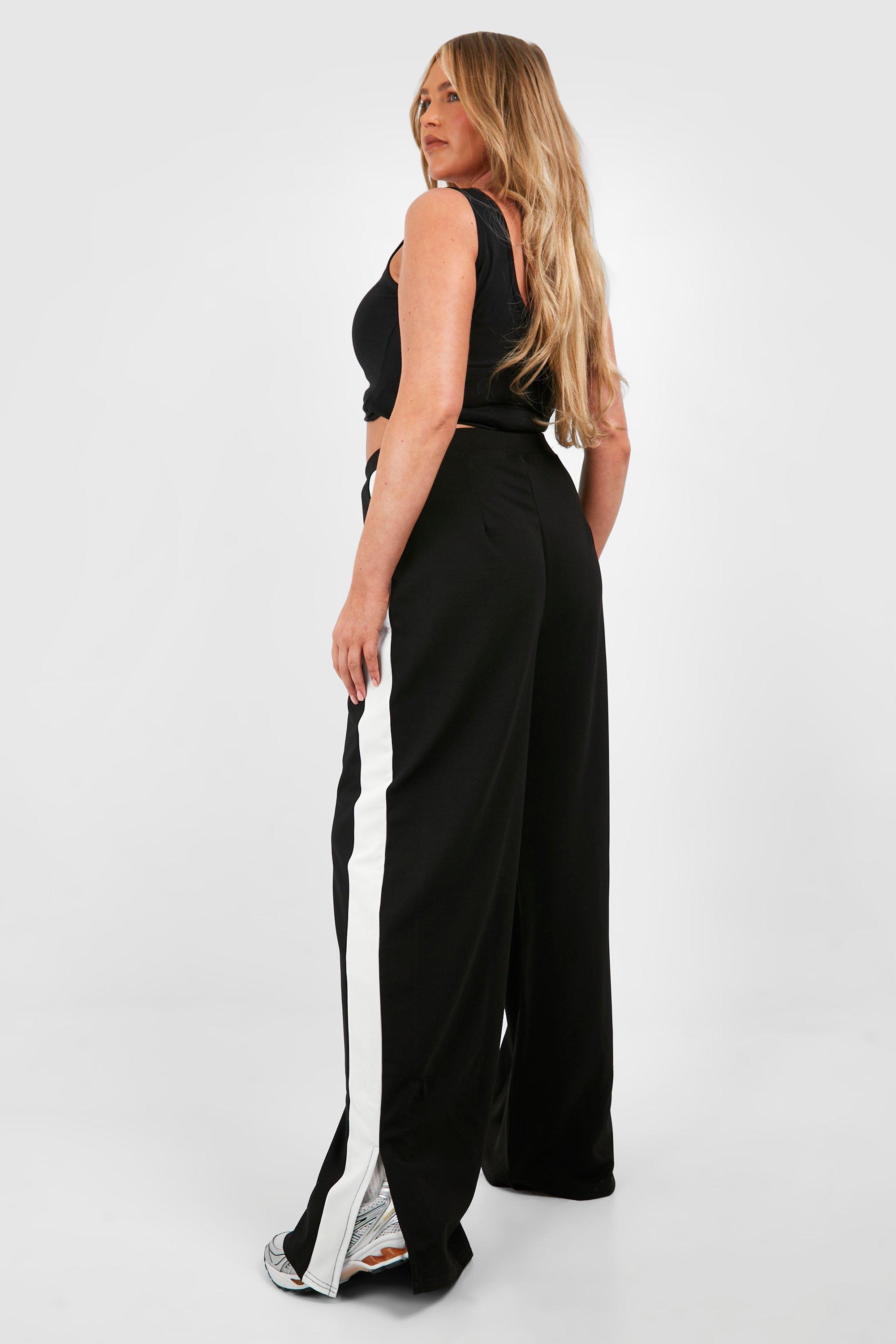 Plus High Waisted Side Stripe Split Hem Pants Very well made.