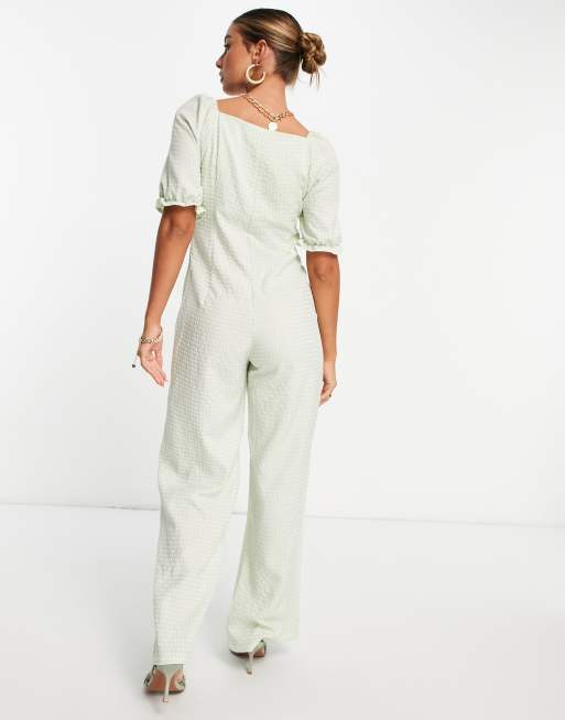 Vila textured jumpsuit with tie detail in green gingham Very well made.