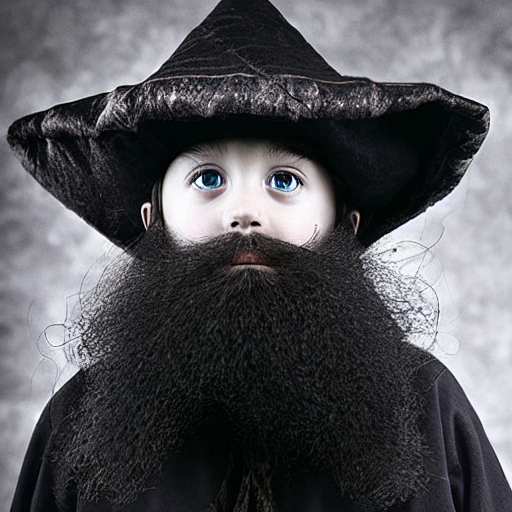 prompthunt photograph of a five year old boy wizard beard Very well made.