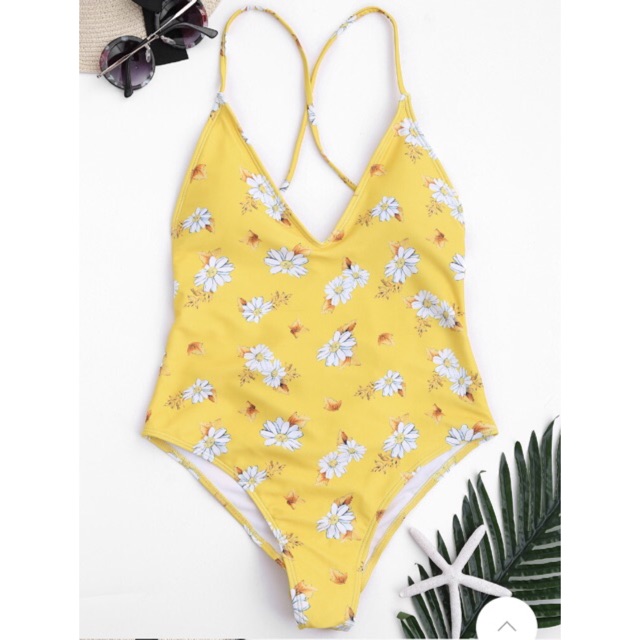 Zaful One Piece Yellow Floral Summer Highcut Swimsuit Shopee Very well made.